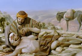 Aproximou-se, ligou-lhe as feridas, deitando nelas azeite e vinho, colocou-o sobre a sua própria montada, levou-o para uma estalagem e cuidou dele.